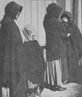 Bonnets and Shawls.—The Amish, too, have time for conversation. Note the bonnets, and initials low on shawl, left. (Upper row, center)