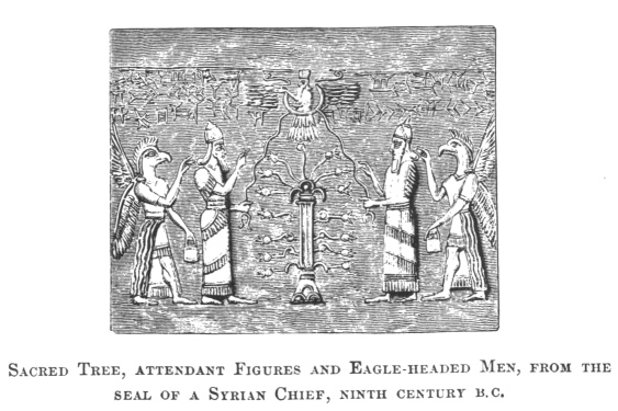 SACRED TREE, ATTENDANT FIGURES AND EAGLE-HEADED MEN, FROM THE SEAL OF A SYRIAN CHIEF, NINTH CENTURY B.C.