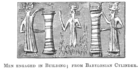 MEN ENGAGED IN BUILDING; FROM BABYLONIAN CYLINDER.