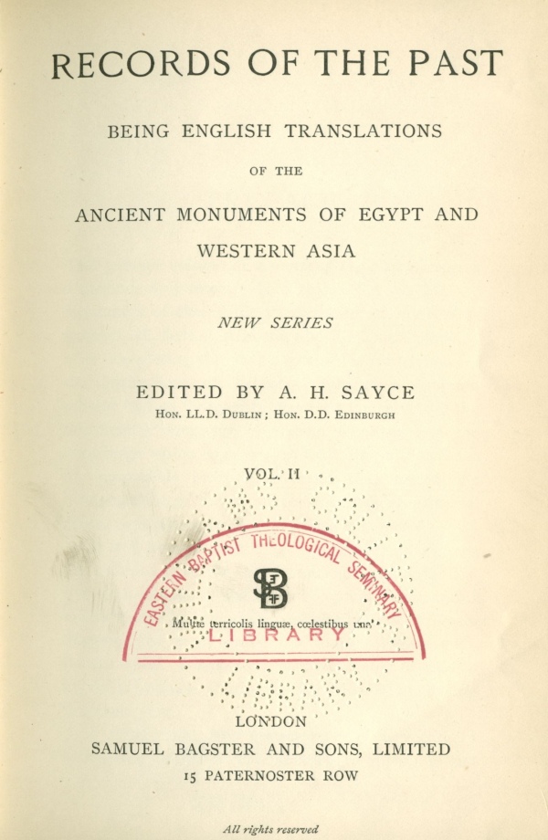Records of the Past, 2nd series, Vol. II, ed. by A. H. Sayce, [1888], at sacred-texts.com
