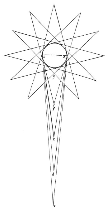 Every body in light and shade fills the surrounding air with infinite images of itself; and these, by infinite pyramids diffused in the air, represent this body throughout space and on every side. Each pyramid that is composed of a long assemblage of rays includes within itself an infinite number of pyramids and each has the same power as all, and all as each. A circle of equidistant pyramids of vision will give to their object angles of equal size; and an eye at each point will see the object of the same size. The body of the atmosphere is full of infinite pyramids composed of radiating straight lines, which are produced from the surface of the bodies in light and shade, existing in the air; and the farther they are from the object which produces them the more acute they become and although in their distribution they intersect and cross they never mingle together, but pass through all the surrounding air, independently converging, spreading, and diffused. And they are all of equal power [and value]; all equal to each, and each equal to all. By these the images of objects are transmitted through all space and in every direction, and each pyramid, in itself, includes, in each minutest part, the whole form of the body causing it.