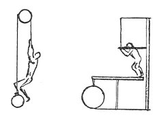 A man pulling a [dead] weight balanced against himself cannot pull more than his own weight. And if he has to raise it he will [be able to] raise as much more than his weight as his strength may be more than that of other men. 190 The greatest force a man can apply, with equal velocity and impetus, will be when he sets his feet on one end of the balance [or lever] and then presses his shoulders against some stable body. This will raise a weight at the other end of the balance [lever], equal to his own weight and [added to that] as much weight as he can carry on his shoulders.