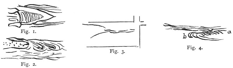 Ponte Rubaconte (Fig. 1); below [the palaces] Bisticci and Canigiani (Fig. 2). Above the flood gate of la Giustizia (Fig. 3); a b is a sand bank opposite the end of the island of the Cocomeri in the middle of the Arno (Fig. 4). 538