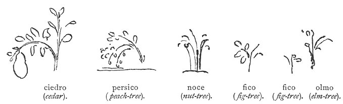 Fables on plants (1275-1279).The cedar, being desirous of producing a fine and noble fruit at its summit, set to work to form it with all the strength of its sap. But this fruit, when grown, was the cause of the tall and upright tree-top being bent over.