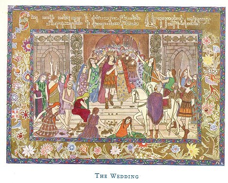 Which being interpreted meaneth that he was commanded to give much gold, leather, and crimson dye in exchange for the maiden. So also they sing of the wedding:--