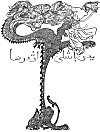 Mounting their horses again they pursued their journey up hill and down dale until by sunset they had reached a great plain. They ate and drank, and were just going to lie down when suddenly an awful shriek was heard and the mountains seemed to quake. Terror seized every one as they caught sight of a gigantic seven-headed dragon, spitting fire and roaring: "Who has killed my two brothers? Bring him to me that I may slay him!"