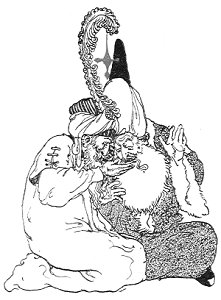 He was again met by the Dew, who enticed him into a coffeehouse and detained him till next morning. During the night the Dew abstracted the letter and wrote another, which said: "Shah and father, take my wife and her two children and throw them down a precipice, and bind the Moon-horse with a fifty-ton chain."
