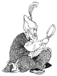 Worrying over his loss brought on an illness, and, seeing their father's condition, his sons inquired the cause. " I am grieving for the loss of my fine mirror," he answered them. Then said his sons: "Do not give yourself so much pain, father, but grant us permission to seek the mirror." His sons' request caused the Padishah much happiness, for if the mirror was not soon found he felt he would die of grief. He gladly gave the desired permission, and the three brothers set out on their journey.