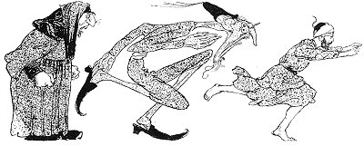Next morning the husband, determined to endure it no longer, saddled an ass and went into the mountains. All he said to his wife was that she must not follow him. He had not been gone long, however, before she also got upon an ass and set off after him. "Who knows," she mumbled to herself, "what he will be up to if I am not with him?" Presently the man became aware that his wife was behind him, but he pretended not to