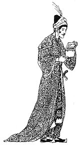 Meanwhile the lala kept guard over them, and when he thought the wedding party were becoming impatient he took clothes belonging to the Princess and dressed himself therein and went to the carriage. Thinking