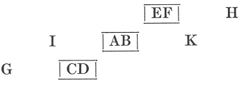 Thus for instance, let us take three bodies, CD, EF and AB, and let EF move towards H, whilst CD moves
