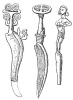 These knives were found in Denmark. The figures upon them represent ships, and it is not impossible that their curious appendages may have been a primitive kind of sails.