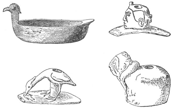 Their sculptures show a considerable degree of progress. They consist of figures of birds, animals, reptiles, and the faces of men, carved from various kinds of stones, upon the bowls of pipes, upon toys, upon rings, and in distinct and separate figures. We give the opinions of those who have examined them.