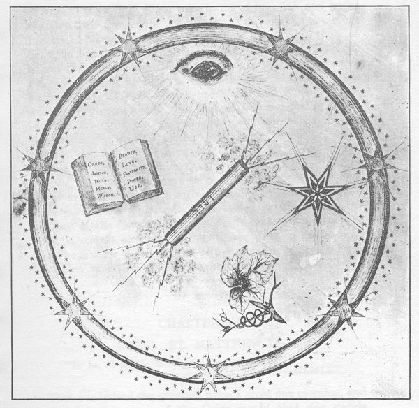 Around that Holy Place were forms of fire. Ink and paper can give little idea of the semblance. Yet look at the picture and try, with my aid, to see. The bolt blazed as a thing of flame, so also the Great Star and all the lesser ones. The Leaf was as life, and the cross the open Way, to the House thereof, while the Ring, I knew, symbolized the Eternal One, endless, beginningless. The Book was the Word, and it blazed with scintillant, crimson flame. But over all, a Personified Presence, was the Eye, the Eternal, sleepless, omnipotent omniscient Supervisor. So stood I in the presence of the Father, made manifest for me. As I remained, I knew all things of His Works, for the Spirit entered in. But not to abide, for as yet the Trial was not come to pass.