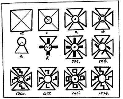 The mother of all crosses was plain with four arms of equal length. I first find it in the Sacred and Inspired Writings as the symbol of The Sacred Four--The Great Creative Forces.