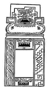 . Slab B, like Slab A, has two divisions, an upper and a lower. These two slabs are so intimately connected that they may be looked upon as belonging to the same legend--Life and Death. Slab A symbolized Death and B, Life.Upper Division