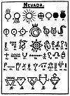 Nevada. The following symbols have been found carved upon the rocks of Nevada. Some of them were etched before the mountains were raised on which they now stand, others were written after the mountains had gone up. There are two distinct dates when these writings were made. Those that were etched after the mountains went up are much more recent than those which were written before the mountains were raised. Probably thousands of years intervened between the two.