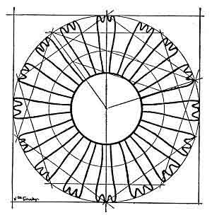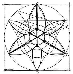 On close examination and comparison I find that most of the geometrical figures used may be found in the shape and details of flowers, leaves, et cetera, as the following examples show: