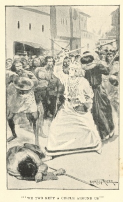 The crowd hustled inward with such greediness to seize what they could that none had space to draw back elbow for a thrust, and we too kept a circle round us by sheer whirling of steel. It is necessary to do one's work cleanly in these bouts, as wounded left on the ground unnoticed before one are as dangerous as so many snakes. But as we circled round in our battling I noted that all of Phorenice's quarry lay peaceful and still. By the Gods! but she could play a fine sword, this dainty Empress. She touched life with every thrust.