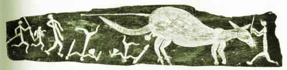 Bark Drawing: a Kangaroo Hunt, (Kakadu Tribe)