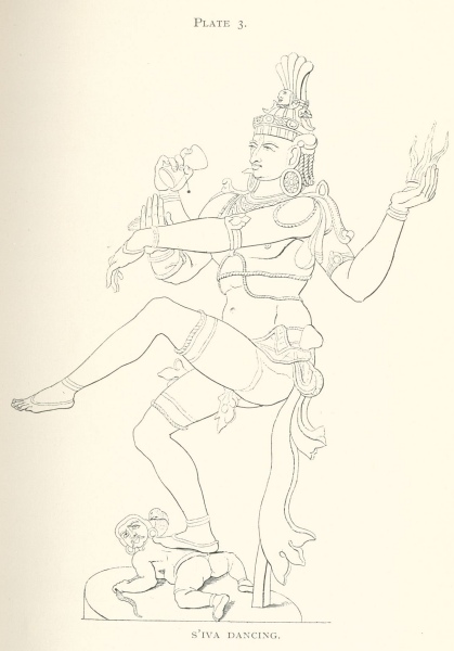 and a little flattery might easily turn his head. He had, moreover, a terrible club charged with horrid spells by Vishnu himself. But Siva seized the club, dashed out the dwarf's brains with it, and then danced in triumph over the dwarf's body. The club, as the Gada, figures in his hand in all his images.
