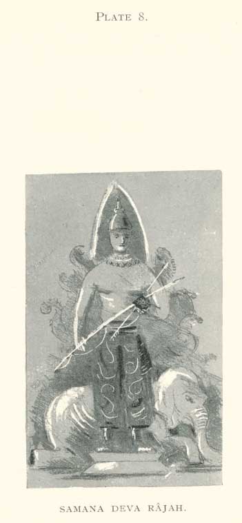 A god with a white elephant at his feet is a popular print in Ceylon. There are several in Mr. Upham's book. He tells us that this god is Samana Deva Râjah, so called from Samane Galle (Adam's Peak), "where he is now living with his deities with power