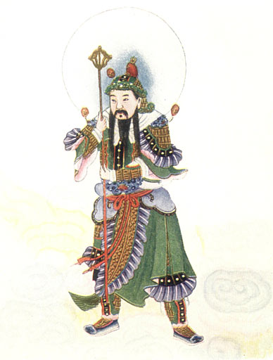 Later on Chiang Tzŭ-ya persuaded Yüan-shih T’ien-tsun to release from the Otherworld the spirits of the heroes who had died in battle, and when Chao Kung-ming was led into his presence he praised his bravery, deplored the circumstances of his death, and canonized him as President of the Ministry of Riches and Prosperity.