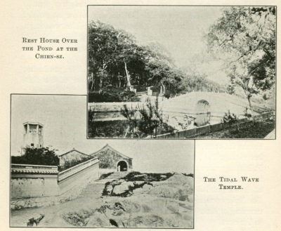 REST HOUSE OVER THE POND AT THE CHIEN-SZ.<br> THE TIDAL WAVE TEMPLE.
