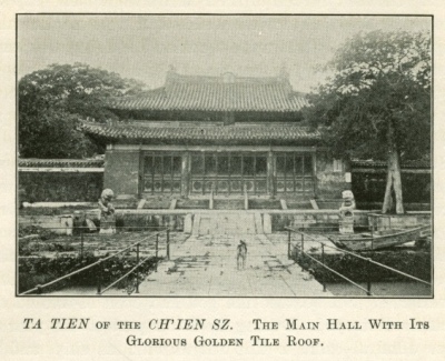 TA TIEN OF THE CH'IEN SZ. THE MAIN HALL WITH ITS GLORIOUS GOLDEN TILE ROOF.