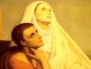 "But our true Life came down hither, and bore our death, and slew him, out of the abundance of His own life: and He thundered, calling aloud to us to return hence to Him into that secret place, whence He came forth to us, first into the Virgin's womb, wherein He espoused the human creation, our mortal flesh, that it might not be for ever mortal, and thence like a bridegroom coming out of his chamber, rejoicing as a giant to run his course. For He lingered not, but ran, calling aloud by words, deeds, death, life, descent, ascension; crying aloud to us to return unto Him. And He departed from our eyes, that we might return into our heart, and there find Him. For He departed, and to, He is here. He would not be long with us, yet left us not; for He departed thither, whence He never parted, because the world was made by Him. And in this world He was, and into this world He came to save sinners, unto whom my soul confesseth, and He healeth it, for it hath sinned against Him. O ye sons of men, how long so slow of heart? Even now, after the descent of Life to you, will ye not ascend and live? But whither ascend ye, when ye are on high, and set your mouth against the heavens? Descend, that ye may ascend, and ascend to God. For ye have fallen, by ascending against Him." Tell them this, that they may weep in the valley of tears, and so carry them up with thee unto God; because out of His spirit thou speakest thus unto them, if thou speakest, burning with the fire of charity.