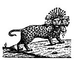 John's "I saw a BEAST rise up out of the SEA, having SEVEN HEADS and TEN HORNS, and upon his horns TEN CROWNS, and upon his heads the NAMES OF BLASPHEMY. And the BEAST which I saw was like unto a LEOPARD, and his feet were as the feet of a BEAR, and his mouth as the mouth of a LION; and the Dragon gave him his power, and his seat, and great authority. And I saw one of his HEADS as it were wounded to death; and his deadly wound was healed; and all the world wondered after the BEAST. . . . And there was given unto him a mouth speaking great things and blasphemies; and power was given unto him to continue FORTY AND TWO MONTHS. And he opened his mouth in blasphemy against God, to blaspheme His Name, and His Tabernacle, and them that dwell in Heaven. And it was given unto him to make war with the saints, and to overcome them; and power was given him over all kindreds, and tongues, and nations." |
