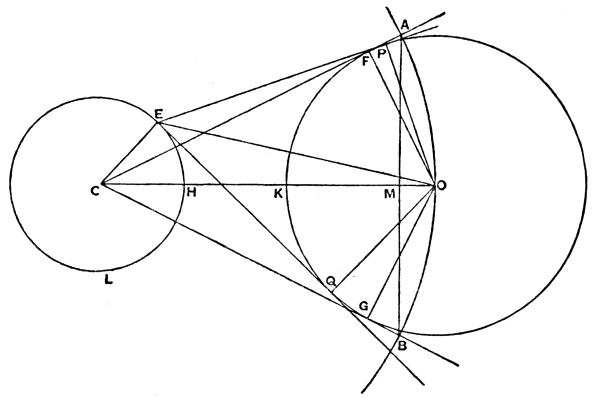 Draw from E two tangents to the circle FKG touching it at P, Q, and from C draw two other tangents to the same circle touching it in F, G respectively.