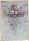 After long search made, the sisters of Psyche came unto the hill where she was set on the rock, and cried with a loud voice, in such sort that the stones answered again: And when they called their sister by her name, that their lamentable cries came unto her ears, she came forth, and said: Behold, here is she for whom you weep, I pray you torment yourselves no more, cease your weeping." And by and by she commanded Zephyrus by the appointment of her husband to bring them down: Neither did he delay, for with gentle blasts he retained them up, and laid them softly in the valley: I am not able to express the often embracing, kissing, and greeting which was between them three, all sorrows and tears were then laid apart. "Come in," quoth Psyche, "into our house, and refresh your afflicted minds with your sister." After this she showed them the storehouses of treasure, she caused them to hear the voices which served her, the bain was ready, the meats were brought in, and when they had eaten and filled themselves with divine delicacies, they conceived great envy within their hearts, and one or them being very curious, did demand what her husband was, of what state and who was the Lord of so precious a house, but Psyche, remembering the promise which she made to her husband, feigned that he was a young man of comely stature, with a flaxen beard, and had great delight in hunting in the hills and dales by. And lest by her long talk she should be found to trip or fail in her words, she filled their laps with gold, silver and jewels, and commanded Zephyrus to carry them away.