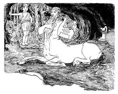 Then Cheiron smiled, and drew the lad to him, and laid his hand upon his golden locks, and said, "Are you afraid of my horse's hoofs, fair boy, or will you be my pupil from this day?"