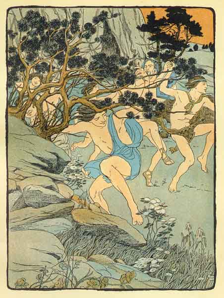 Then Cheiron took his lyre, and all the lads joined hands; and as he played, they danced to his measure, in and out, and round and round. There they danced hand in hand, till the night fell over land and sea, while the black glen shone with their broad white limbs, and the gleam of their golden hair.