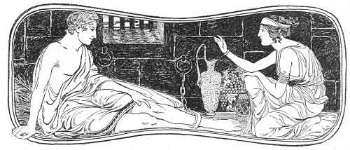 But Ariadne, Minos' daughter, saw him, as she came out of her white stone hall; and she loved him for his courage and his majesty, and said, "Shame that such a youth should die!" And by night she went down to the prison, and told him all her heart; and said,--