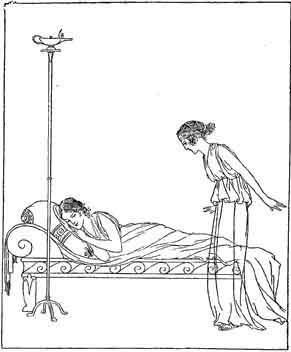 Nausicaa, when she rose, thought upon her dream, and she went through the Palace and found her father. He was going to the assembly of the Phaeacians. She came to him, but she was shy about speaking of that which had been in her dream--her marriage day--since her parents had not spoken to her about such a thing. Saying that she was going to the river to wash the garments of the household, she asked for a wagon and for mules. So many garments have I lying soiled, she said. Yea, and thou too, my father, should have fresh raiment when you go forth to the assembly of the Phaeacians. And in our house are the two unwedded youths, my brothers, who are always eager for new washed garments wherein to go to dances.