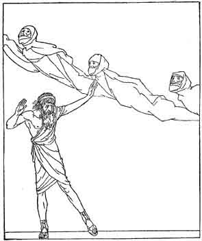 Telemachus has no luck in his guests. One is a dirty beggar, who thinks of nothing but what he can put from his hand into his mouth, and the other wants to stand up here and play the seer. So the wooers spake in mockery, but neither Telemachus nor Odysseus paid heed to their words, for their minds were bent upon the time when they should take vengeance upon them.