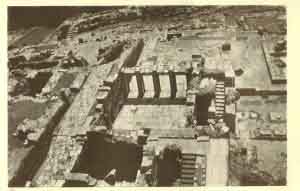 Reference has been made to the sacred rooms in the great palace of Knossos. Unlike the Egyptians, the Cretans erected no temples. Their religious ceremonies were conducted in their homes, on their fields, and beside sacred mountain caves. Sir Arthur Evans discovered in the south-eastern part of the palace, near the ladies' rooms, a little shrine which could not have accommodated more than a few persons.