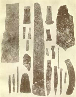 Including double axes, spear-heads, knives, daggers, fish hooks, fibula, tweezers, gimlet, &c.