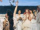 [paragraph continues] But they were afraid of their husbands, and greeted with a kiss and a warm embrace such of their kinsmen and members of their household as they encountered; and when the men had ceased from their wrath and had become reconciled, the women continued thereafter as well to employ this mark of affection towards them.
