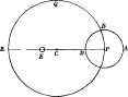 "The alternate progression and regression of the planets was accounted for by supposing them to move, not directly with their crystallines, but in a small circle whose centre was a fixed point in the crystalline, and which revolved on its axis as it was carried round with the latter; thus (fig.) the planet was carried round the small circle A B D, as that circle was carried round P Q R (now supposed to represent the planetary crystalline). The planet, while in the outer portion of its small circle, would thus have a forward and in the inner portion a backward motion. The larger circle was called an eccentric and the smaller an epicycle"