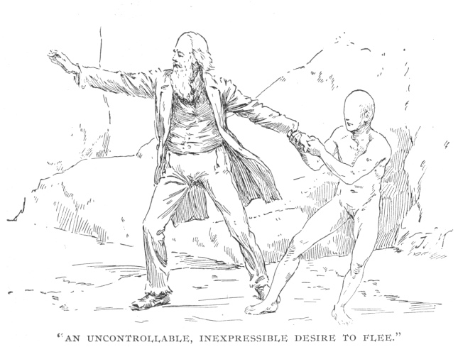 I stopped short, in momentary alarm, and now that my mind was directed to the fact, I became aware that I did not desire to breathe, and that my chest had ceased to heave with the alternate inhalation and exhalation of former times. I closed my lips firmly, and for a long period there was no desire for breath, then a slight involuntary inhalation followed, and an exhalation, scarcely noticeable, succeeded by a great interval of inaction. I impulsively turned my face toward the passage we had trod; a feeling of alarm possessed me, an uncontrollable, inexpressible desire to flee from the mysterious earth-being beside me, to return to men, and be an earth-surface man again, and I started backward through the chamber we had passed.