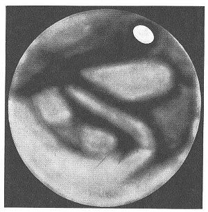 vapor on the inside. It is this water vapor that causes the interior clouds that have been observed to cut off the light of the interior sun. It is this sun itself that sends those periodical messages--glints of direct light that could never come from an inert mass of frozen carbon-dioxide or from a thin film of hoar-frost that is said to evaporate.