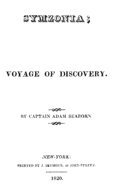 Symzonia; Voyage of Discovery, by Adam Seaborn (pseud. John Cleves Symmes?), [1820], at sacred-texts.com