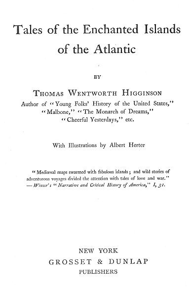 "Mediæval maps swarmed with fabulous islands; and wild stories of adventurous voyages divided the attention with tales of love and war."--Winsor's "Narrative and Critical History of America," I, 31.