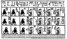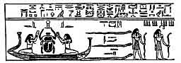 [paragraph continues] In front of the boat glide three serpents, which are called SEK-RE, SEFA, and NEPEN, and in front of these march four man-headed
