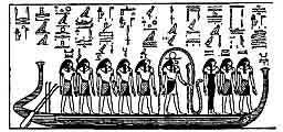 1. The boat of the sun, in which the god stands under a canopy formed by the serpent Mehen; he
