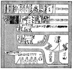 Accompanying the picture of the Elysian Fields is a long text which forms Chapter CX. of the Book of the Dead. As it supplies a great deal of information concerning the views held in early times about that region, and throws so much light upon the semi-material life which the pious Egyptians, at one period of their history, hoped to lead, a rendering of it is here given. It is entitled, "The Chapters of Sekhet-Hetepet, and the Chapters of Coming Forth by Day; of going into and of coming forth from the underworld; of coming to Sekhet-Aaru; of being in Sekhet-Hetepet, the mighty land, the lady of winds; of having power