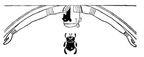 DURING the two or three centuries before the Christian era, Osiris the judge of the dead, in his character of Osiris-Apis, or Serapis, had risen to a higher rank in the Egyptian mythology, and had been personified by the Ptolemies in Alexandria as the chief of the gods. He had at the same time become more a god to be feared, of which we shall see clearer proof when we come to speak of the Gnostics, when he will appear as the god of evil, under the form of the wicked serpent. This seems to have turned the worshippers towards other gods, who might shield them from his severity and wrath; and it led them to seek another judge, whom they might look upon with love. Such friends they found in the goddess Isis and her son Horus, who then took that place in their affections which, under the kings of Sais, had been held by the goddess Neith. Horus, in one of his three characters, that of the Scarabæus, takes the place of Amun-Ra, the all-seeing god; and we find the vault of heaven represented not by the outstretched wings of either that god of Thebes, or of Neith, the queen of Sais, but by the